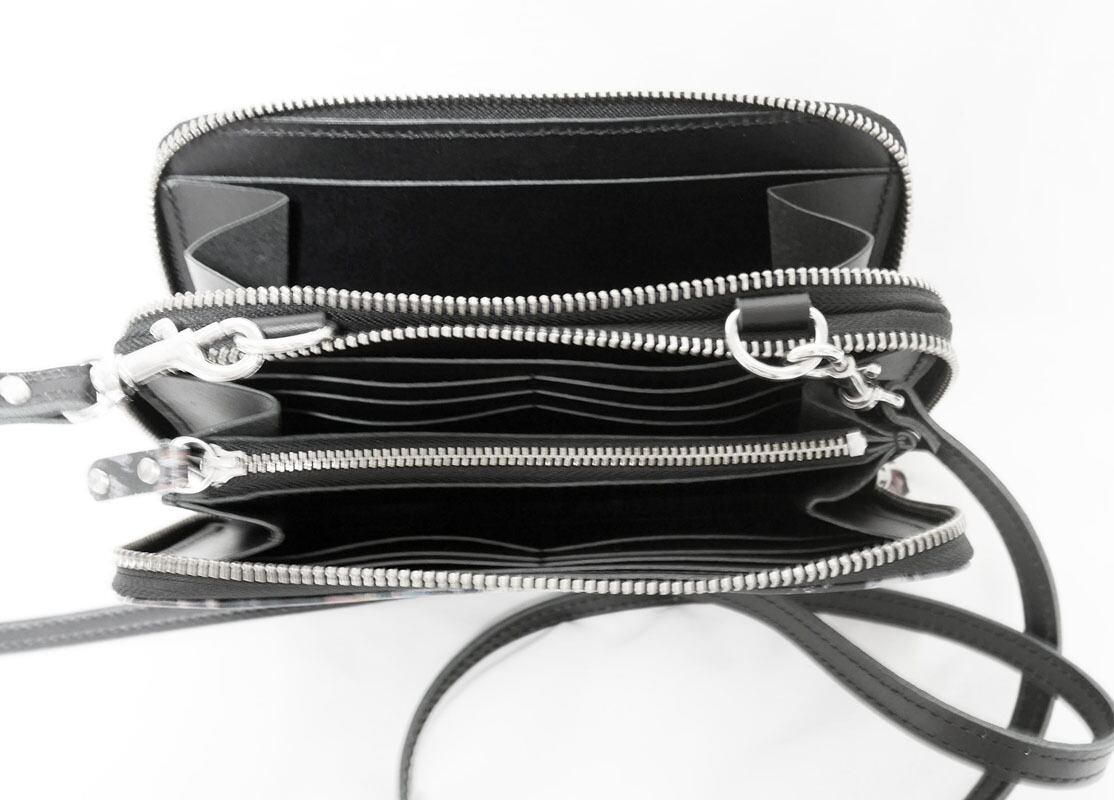 脱着可能なレザーストラップ付きですわ歯科ので、ストラップを取れば少し大きめな財布として、付ければ斜め掛けの小さなバッグとして使用できます。