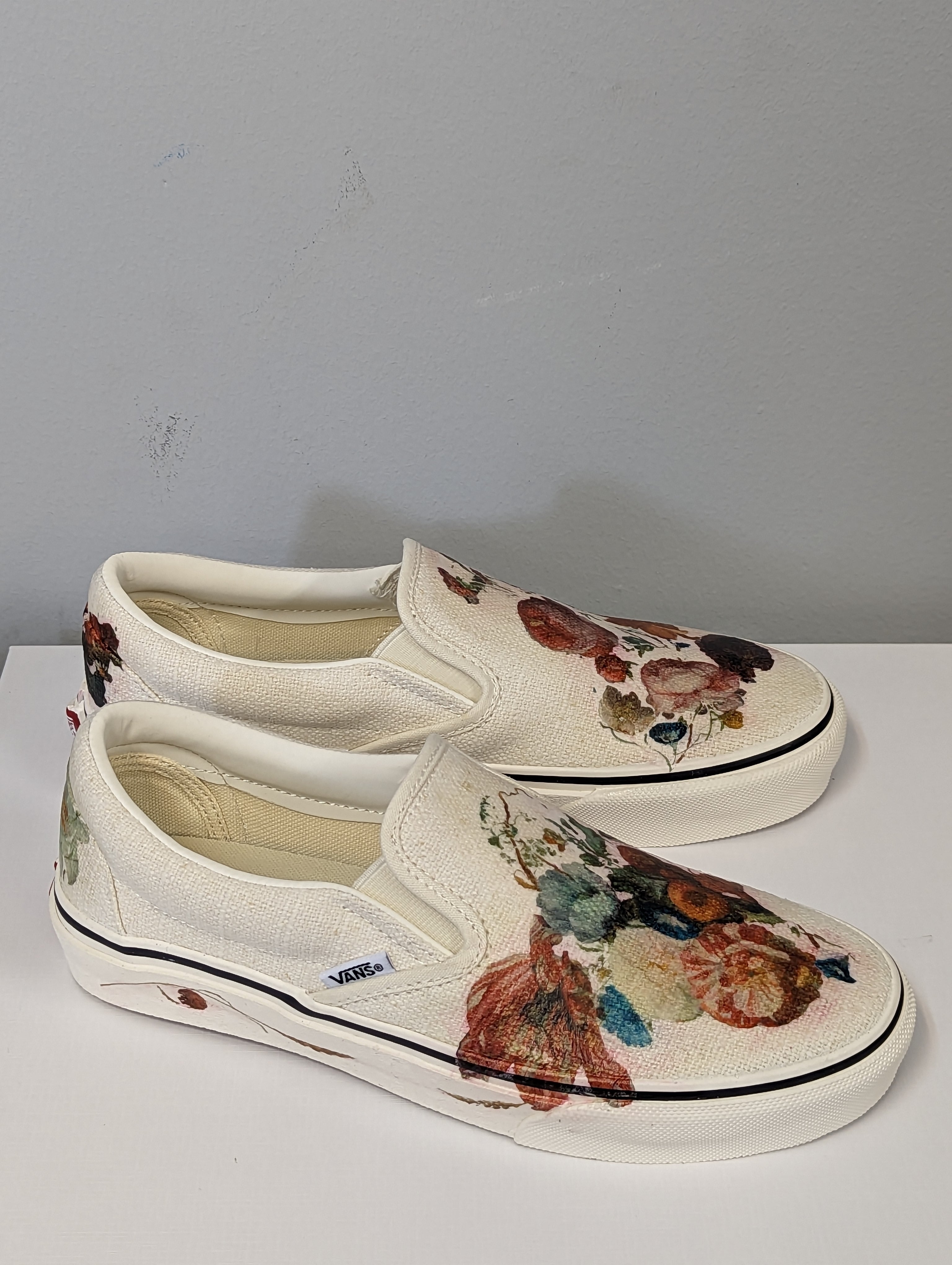 花の静物画を転写プリントしたVANSのCLASSIC SLIP-ONになります。